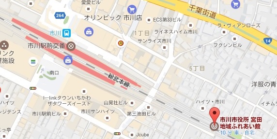 〇会場: 市川市宮田地域ふれあい館(JR市川駅 シャポー千葉側出口より千葉方面100m 高架下)