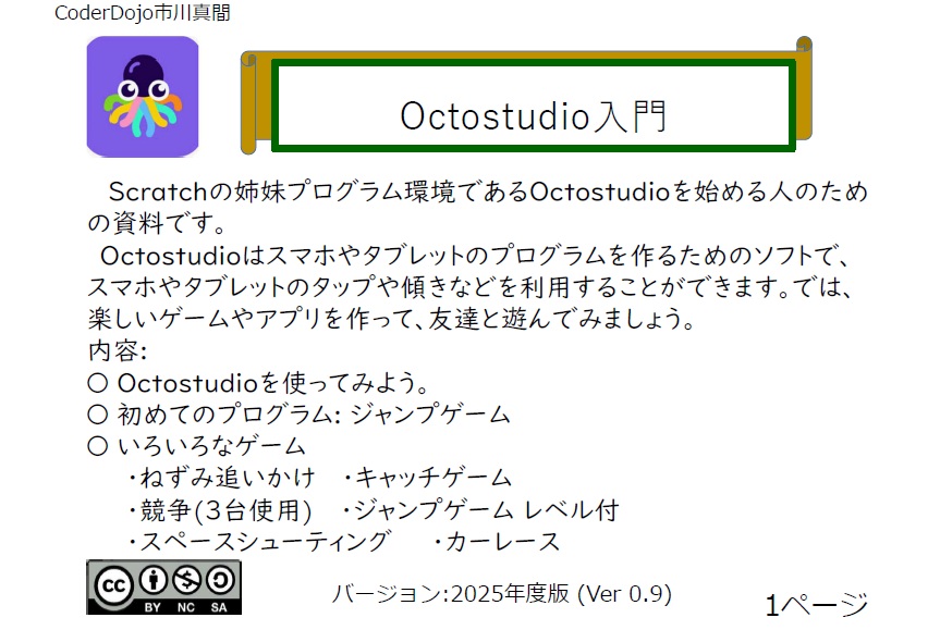 コーダー道場市川真間ではオリジナルの教材を作成しています。まだ暫定版ですが、今後、実際の道場での子供たちの意見をもとに改良していきます。