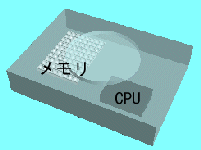 左の図にプレイステーションの仕組みを示しました。本体の中にメモリとCPUが入っています。ファミコンとの大きな違いはメモリの内容です。