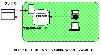 ホームページはHTMLという形式で作成します。現在はHTMLを作成するホームページ作成の専用ソフトや、Wordや一太郎などのワープロソフトを使っても作成できます。これらで作成したHTMLファイルをWebサーバに格納すれば、外の人はそのホームページを見ることができます。Webサーバが学校にあるような場合は、作ったHTMLファイルをフロッピィ・ディスクに入れて、サーバに持っていくことができます。