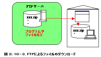 ホームページの話から離れますが、インターネット上にはいろいろなプログラムや文書のファイルが提供されています。これらのファイルもFTPを使ってサーバからパソコンに持ってきます。このような転送をダウンロードといいます。