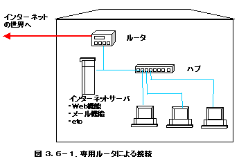 図3.6-1は、専用ルータでの接続例を示しました。これはルータが独立した機械になっています。